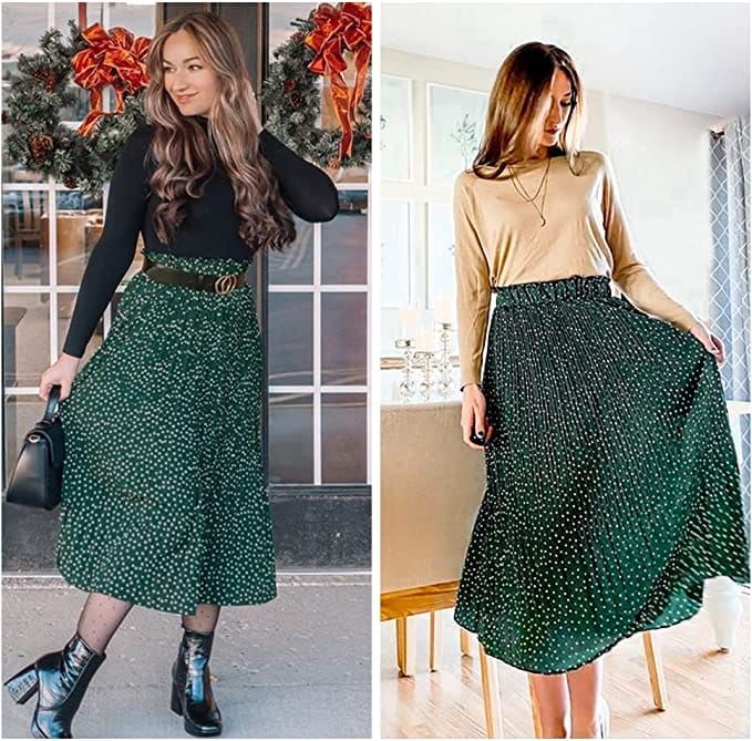 Midi skirts are one of my favorite recent trends, perfectly pairing with everything from simple tanks to chunky sweaters. (They’re also great at hiding imperfections, FYI.) This one has a high waist and elastic waistband as well as the “triple P”: Pleats, pockets and polka dots. This might be the perfect piece for adding a pop of color to your capsule.