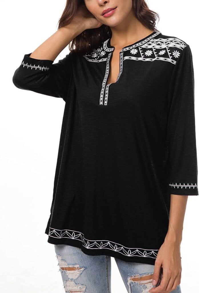 There’s no need to worry about whether or not this tunic will fit you after a few washes — the relaxed fit will look great no matter how many times it goes through the dryer. It features adorable embroidered details, while the split neckline is modest enough for any occasion.