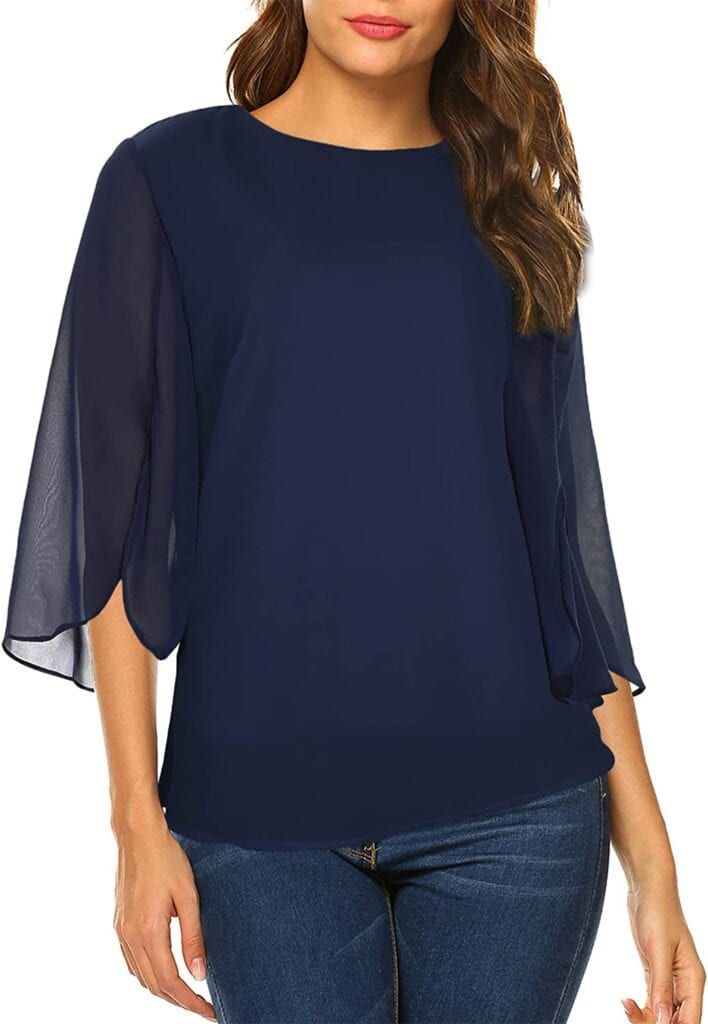 It doesn’t matter whether you’re working from home or working on a second margarita at happy hour — this chiffon blouse has you covered. The breezy sleeves are lightweight so that you don’t get too hot, and it’s made from polyester that’s oh-so-soft. Choose from colors like wine, purple, blue, and others.