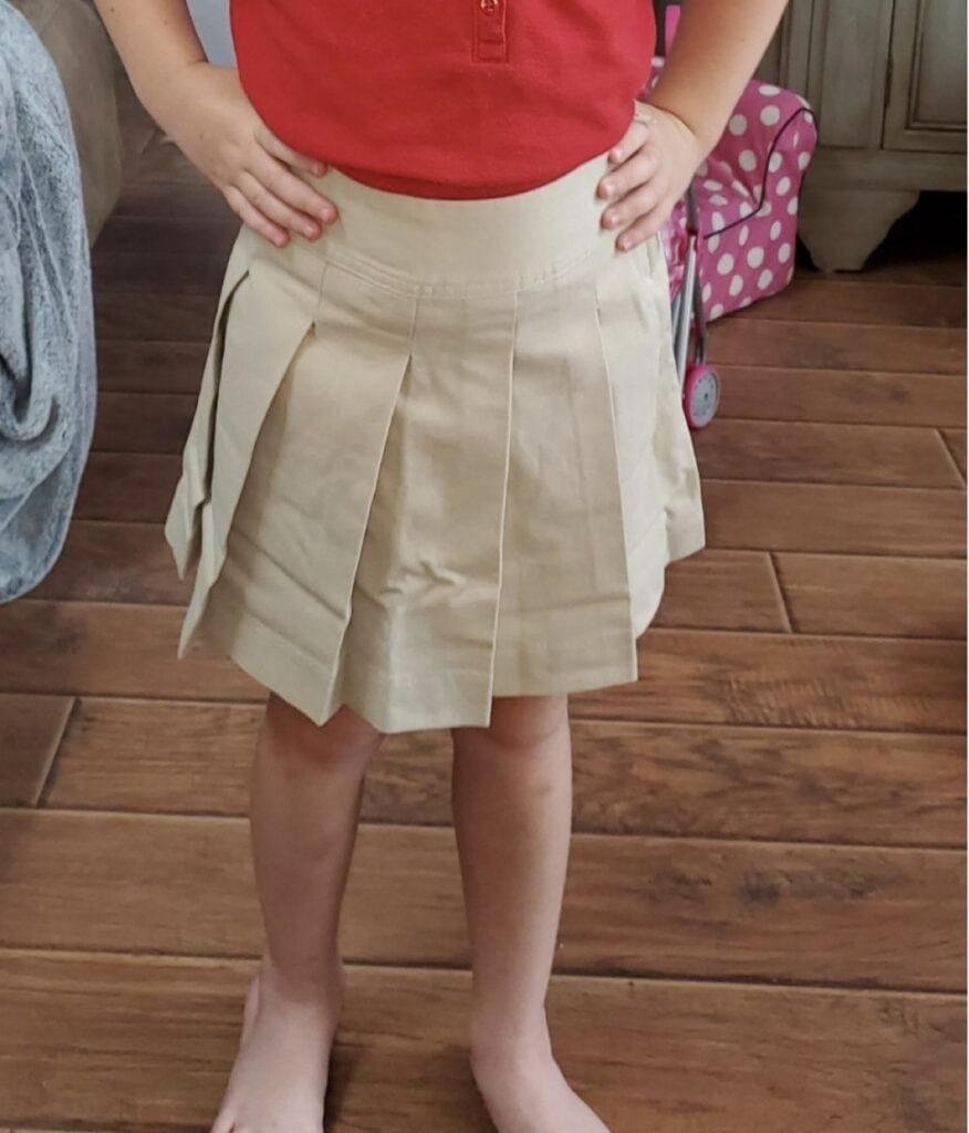 I’m here to help those parents whose kids have to wear uniforms. I know that you could go to Target or Old Navy and get clothes, but you could also order this skort which is of higher quality, and you don’t have to leave your house to get it. I call that a parenting win-win.