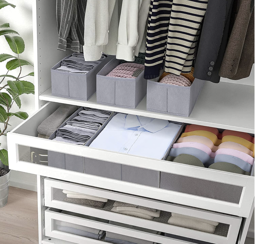 If you don’t want to look through multiple products to find the different sizes and arrangements that you need, this variety pack is a great option. It comes with five different drawer organizers in different sizes with different compartments so that you can organize everything from underwear to shirts.