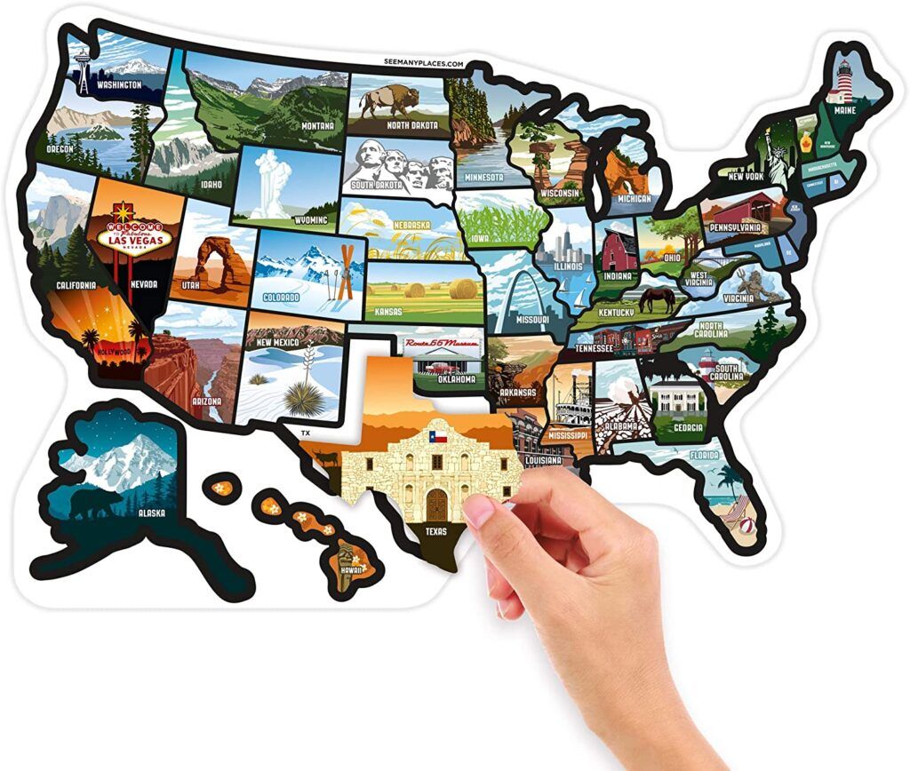 My husband and I have been to about twenty states, and we’ve been to all but one of those together. We’re very proud of that, so we’ll take any chance to show off our travel which is why I love this magnetic state map. It can be proudly displayed on your refrigerator or even on your RV!