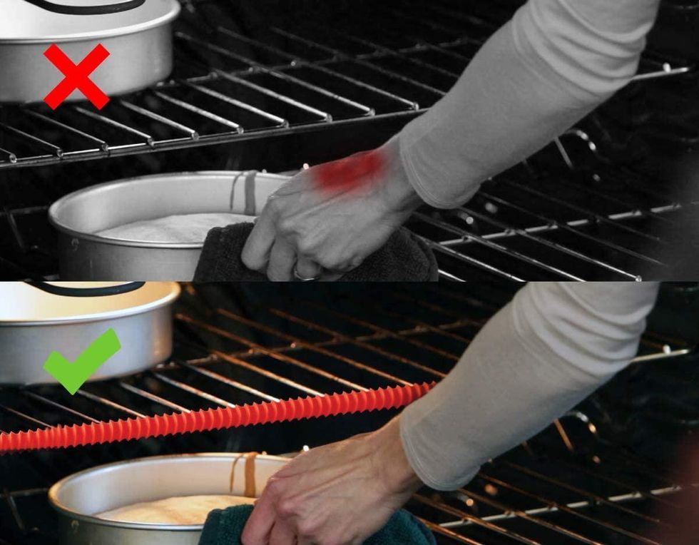 I’m not the most careful person around, add in a little klutziness, and that all adds up to getting burned whenever I try to use the oven! But no longer, since I got these oven rack covers that protect my hands, wrists, and arms from getting singed when I get too close by accident. They’re silicone, so they can stand the heat up to 450 degrees F with no chance of melting!