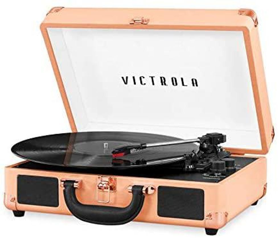 Records are back… or maybe they never really went away, I don’t know. But, you need a record player and you’re in luck. This Victrola suitcase record player is more than affordable to add to your entertainment center and comes in all kinds of sassy colors, from this peach rose gold to a righteous tie-dye. No extra equipment is required and all the controls you need are right there on the top of the unit.