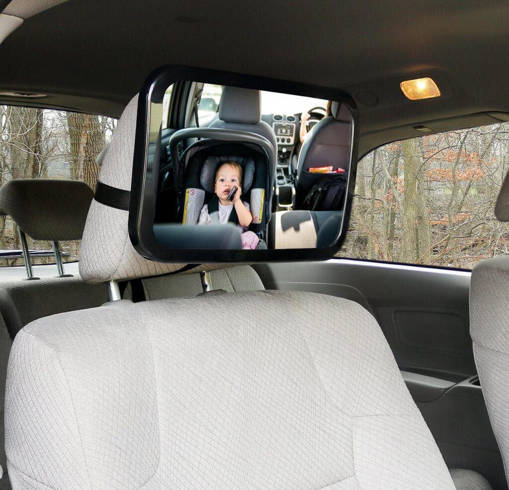 Of course, keeping a close eye on your little one while you drive is crucial once they get big enough to sit in the back by themselves. That’s why I highly recommend using this mirror. It easily wraps around your headrest so that you can see them at all times.