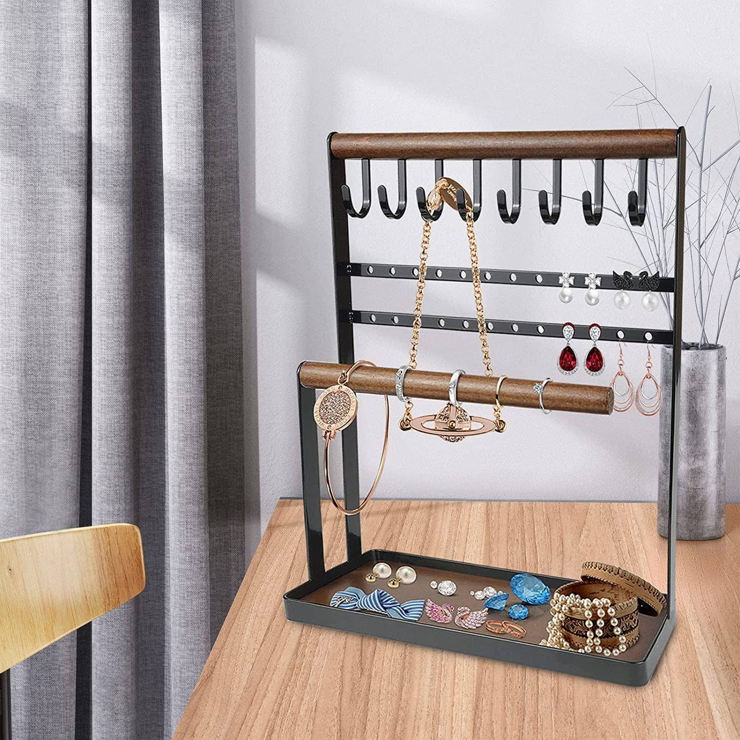 As far as jewelry organizers go, this one just looks better than most. It’s made from a combination of high-quality metal and wood, giving it a classic appearance that’ll look good just about anywhere you put it. And with space for necklaces, earrings, bracelets, rings, and more, you can easily use it to store your entire collection.