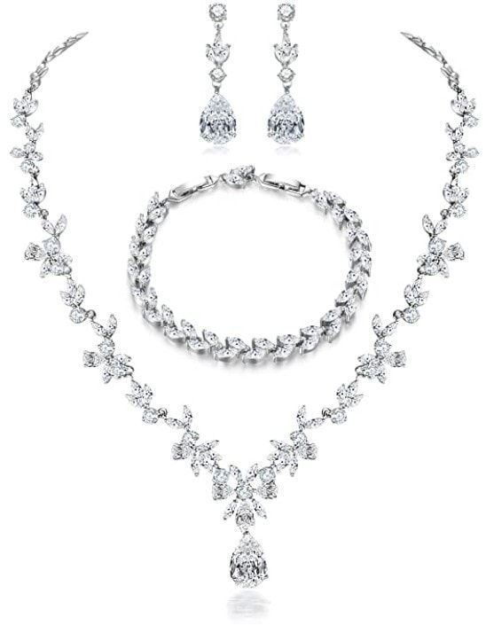 I’ll be the first to admit that I sometimes have trouble figuring out what pieces of jewelry look good with each other. Luckily, this necklace, earring, and bracelet set is already styled to match — and each piece is even plated with real white gold. Plus, the cubic zirconia stones sparkle just like real diamonds.