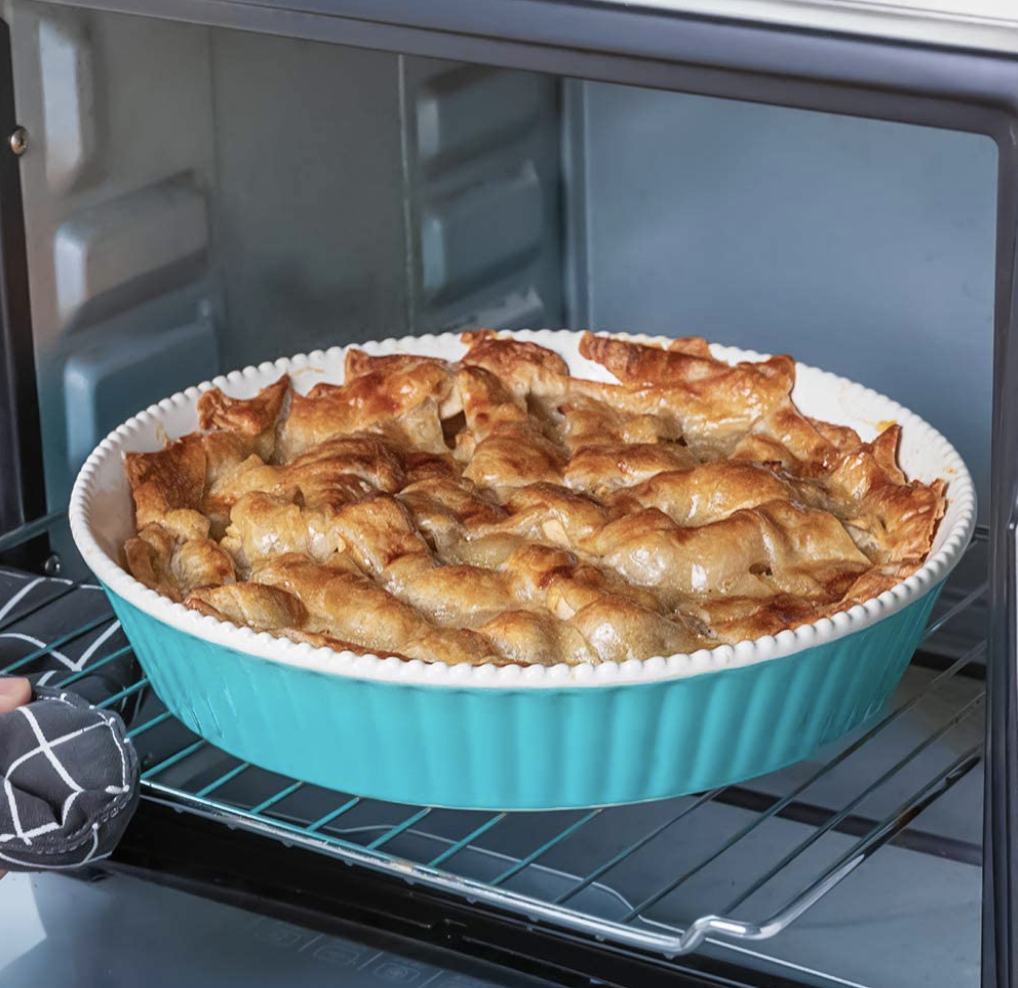 Delicious pies should also be displayed in a beautiful dish and this ceramic pie plate by Krokori is my absolute favorite. It’s a deep pan that will not only perfectly bake apple pir or pumpkin pie, it can also work wonderfully for quiche or pasta dishes, or as a serving plate. This dish will work for many recipes.