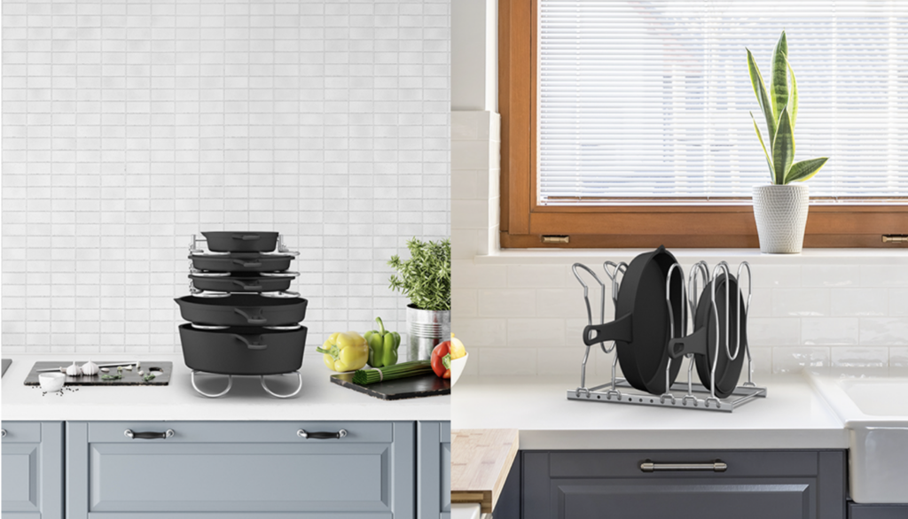 It’s dreadful to need a particular pot or pan and then you can’t find it. That’s why this cookware organizer comes in so handy. Not only will you keep your pans organized but you can organize lids too. It’s adjustable so you can maximize the use of the rack while also maximizing your kitchen cabinet space.