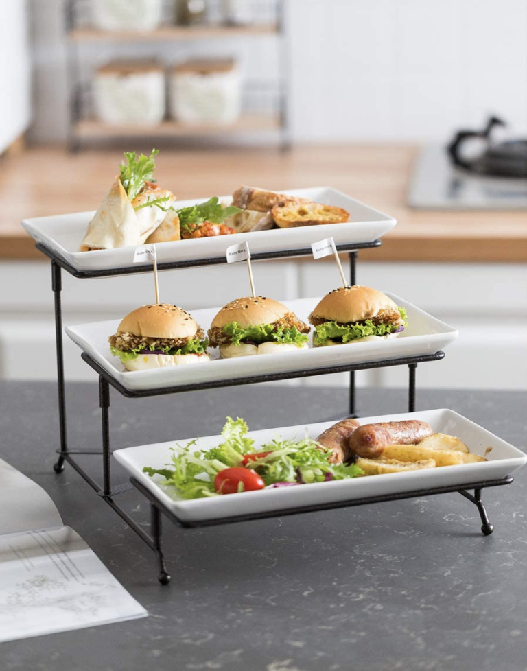 Whether you’ve just cooked up burgers or made decadent desserts, display and presentation is everything. A three-tiered tray like this one will give you the versatility and range to showcase your work or just make meal time fun for all of your guests. The plates are dishwasher safe making clean up a breeze and ready for their next use.