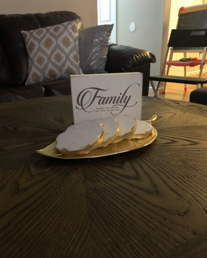 I love appetizers, but appetizers served on a beautiful platter create a whole vibe. This gold leaf tray is perfect for this season and I’d use it for other seasons as well.