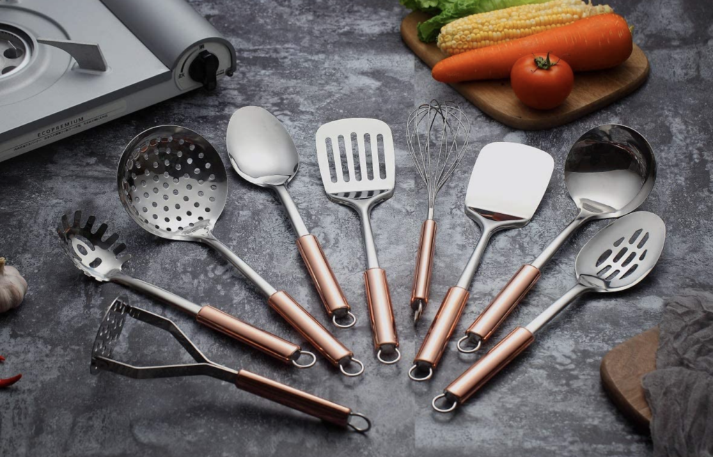 A good utensil set goes a long way in a kitchen and this one will cover all of your bases. The rose gold handle gives these such a classy touch while being easy to clean. These would make a great housewarming gift too.