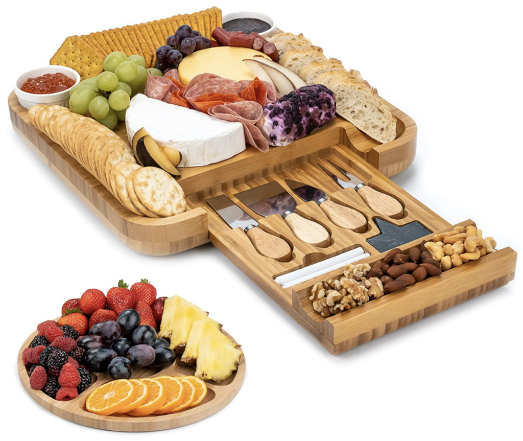 Charcuterie boards are the ultimate in entertainment snacks. I’ll be honest, they are my favorite too but I normally feel like I don’t know how to make a Pinterest-worthy presentation. This charcuterie board and tray takes the guesswork out. And it comes with utensils for slicing cheese, so it also gets an A-plus in practicality.