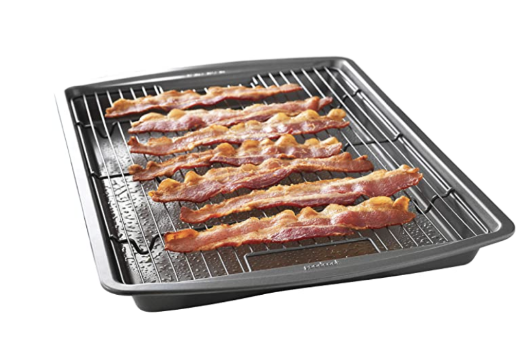 Not everyone has the counter space for an air fryer and if that’s you, then this baking sheet is a great option. I made baked bacon on one recently and it was delicious. This sheet and rack set is also ideal to use for cooling baked good making it a very useful and versatile tool in your kitchen.