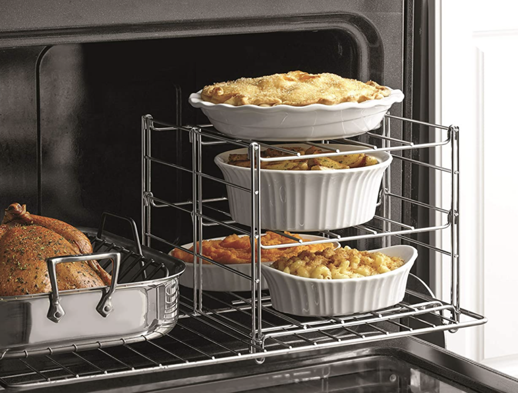 If you have a pie you’d like to bake but also need to cook a casserole and a rotisserie chicken, you’ll need to maximize oven time and space. This three-tiered oven rack is going to be incredibly useful for those times you need to bake a load of food.