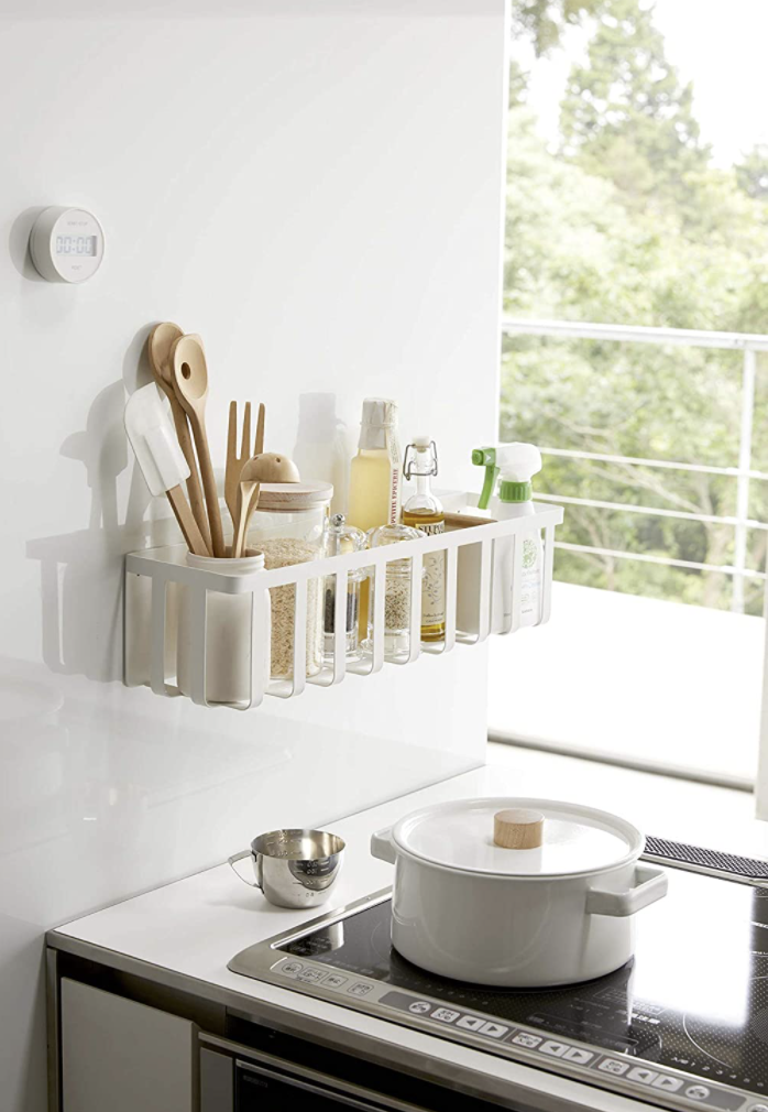 This storage shelf doesn’t just look modern and cool, it’s actually very functional. Keep your utensils, spices, or whatever your essentials are organized and within reach.