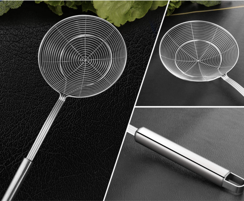 This spider strainer has over 16,000 5-star reviews and as an owner of one of these, I can tell you that they are all totally right about how wonderful this kitchen tool is. “This has become my most used kitchen utensil. I love it! I make a lot of pasta and this has replaced the many strainers and tongs I’ve collected in my quest for the perfect utensil. It’s big enough to scoop up any pasta and the food does not fall through in the process. The gaps are the perfect size to prevent food from getting lodged into it and small enough to keep food from falling through. I like that I can lean it on the ridge of a pot without damaging it or burning a handle.”