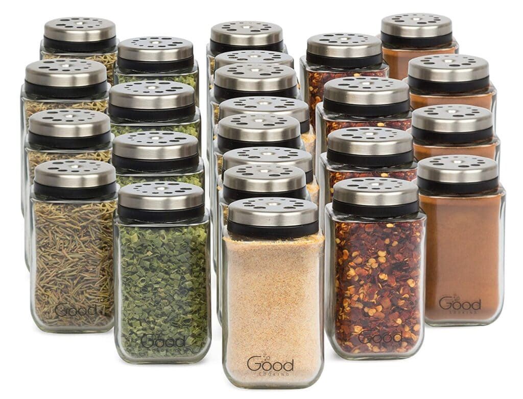 This set of twenty-four spice jars is such a handy product. Each jar comes with an adjustable lid, that lets you choose from 6 different pouring sizes so that you can be sure to get the right amount of flavor every time. They are also great for storing your own concoctions of spice rubs or mixes.
