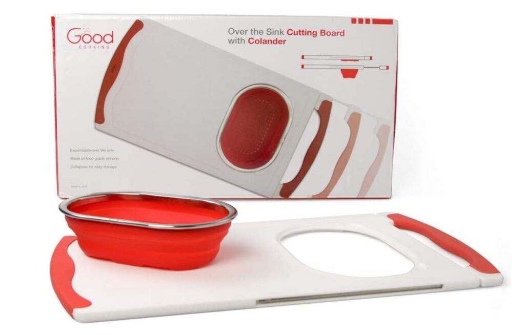 This over-the-sink cutting board is such a clever idea – it even has a colander to make for easy veg washing. Reviewers love it: “Surprisingly, the best part is the little colander part which I use all the time to drain small amounts of food, like a can of black beans. Beats hauling out my big colander. I like the red in my kitchen and the board will expand to fit any sink while staying rigid.”