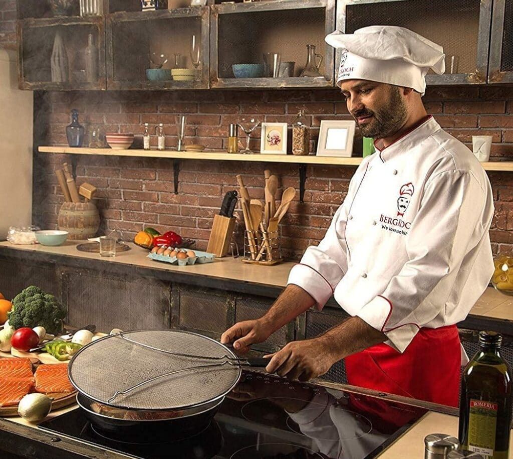 With over 24,000 customers leaving 5-star reviews for this stainless steel splatter screen, you can be sure that this item is worth the investment. Measuring fifteen inches in diameter, it should fit over all your pans to keep your food in the pan, rather than spitting out all over the counters!