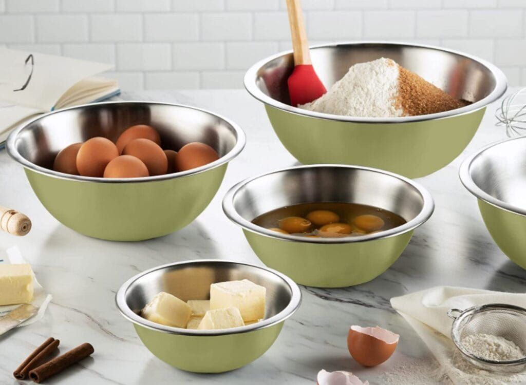 Upgrade your cooking experience with an investment in this pack of 6 stainless steel mixing bowls. Each set features a range of sizes to work for all sorts of tasks, from mixing batters to prepping salads. However, the best part is that they nest neatly into one another, saving you loads of space in your cupboards.