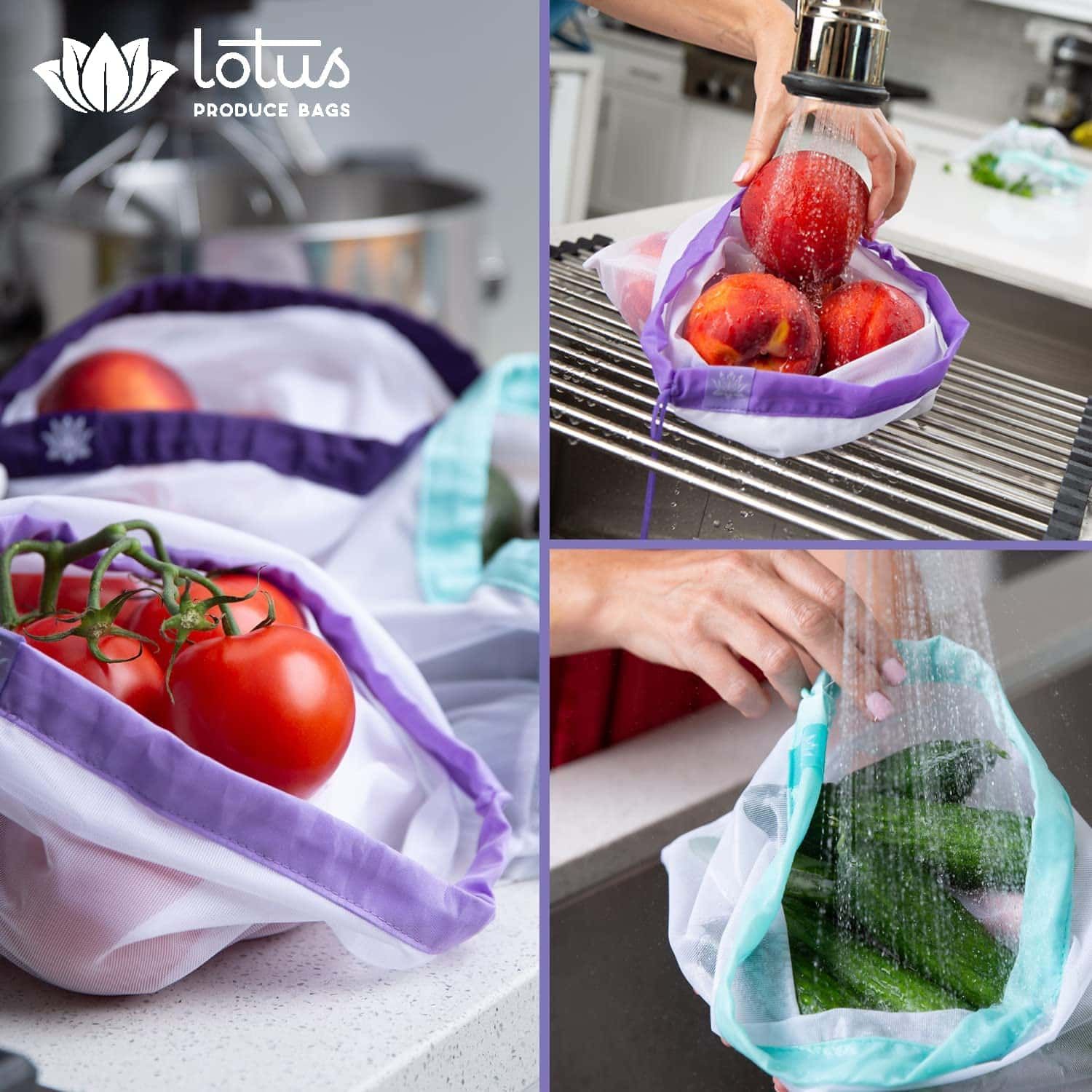 One of the things I hate most about buying produce is those awful plastic bags in a roll at the store. These bags are lightweight, made of mesh, reusable and sturdy, holding more than 25 pounds. The best part to me is the ability to take them from the store right to the sink so you can freshen up your produce before sinking your teeth in.