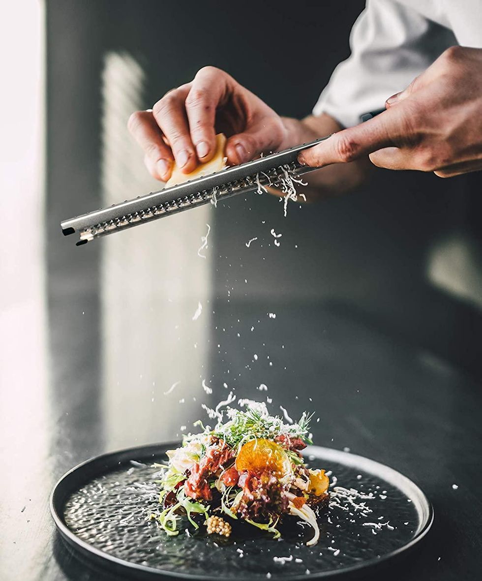 A grater/zester is one of those kitchen gadgets you don’t realize you need until you’ve already bought it. (The trick is to just buy it and figure it out later.) It has unlimited versatility, from grating cheese or ginger to zesting lemon or nutmeg. The design — long and thin — doesn’t take up much space in a drawer, so you can throw away that clunky box grater you inherited from your mom.