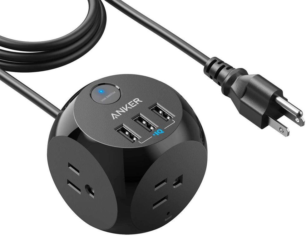 With three outlets and three USB ports, this Compact Power Strip is a must-have for travel. It’s made by Anker, a well-respected brand known for high-value, low-cost peripherals. I love that the placement of the ports means large chargers don’t run into each other, so you get access to every port no matter what.