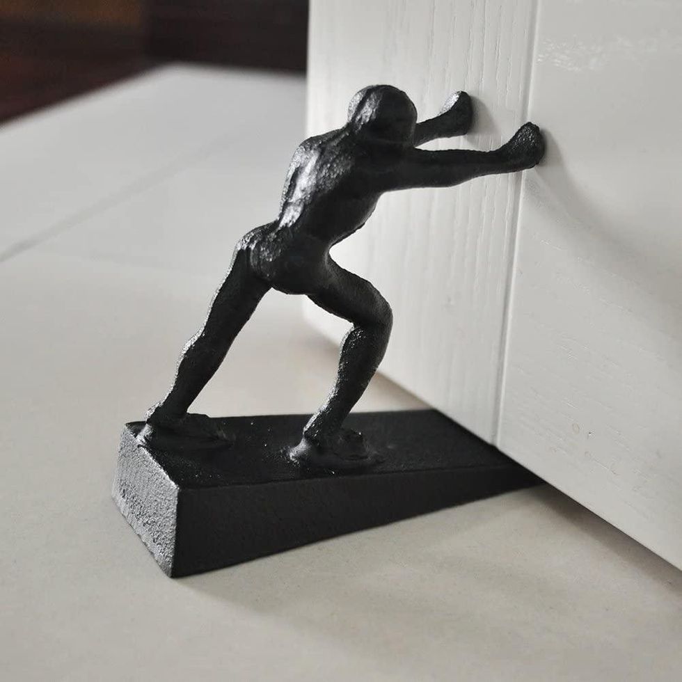 The door to my bedroom will not stay open, no matter what I do. Rather than hang out in there with the door closed all the time, I invested in a doorstop, not unlike this cast iron “strong man” stopper. This guy has all the muscle and puts it to good use, keeping your doors open with ease. It also comes in various other designs, including a cat, mouse, dog, and frog but, hey, I like seeing a man at work.