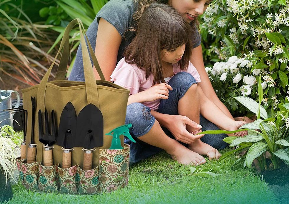 When I moved into my house, a friend gifted me this 8-Piece Gardening Set. It’s the perfect set for beginners or anyone wanting a fresh start on yardwork! The value-priced set includes a sturdy tote bag, five metal tools with wooden handles, a spray bottle, and gloves.