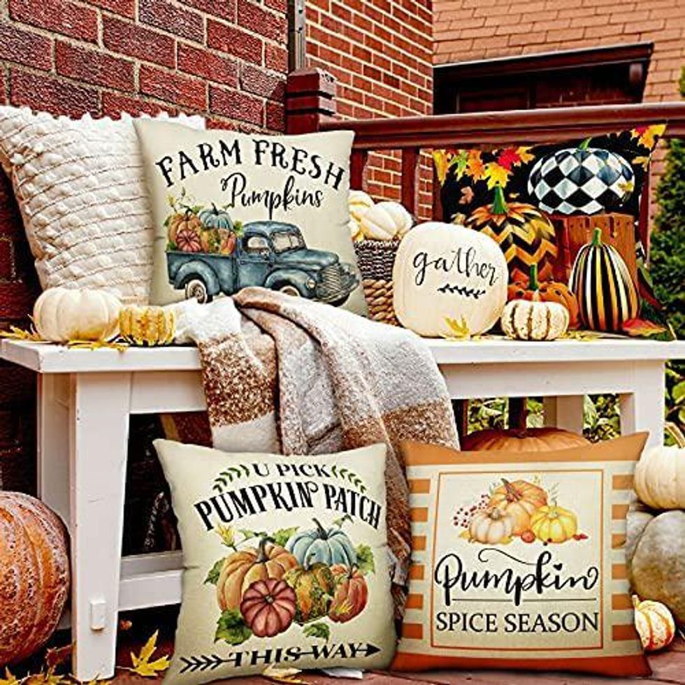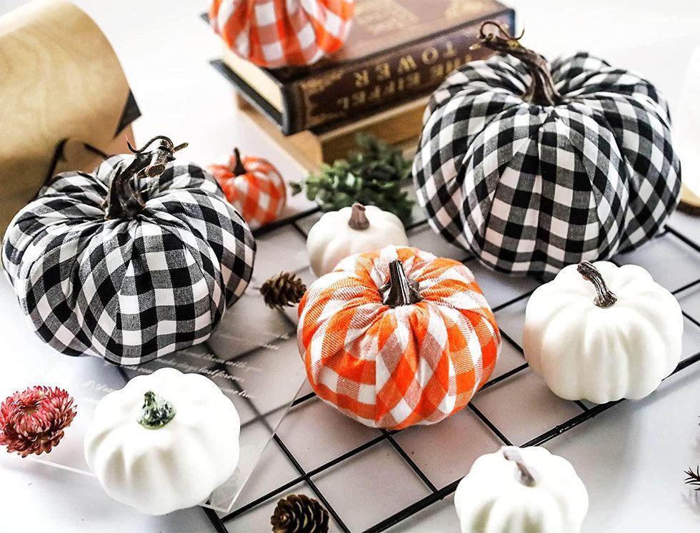 I couldn’t write a list about fall must-haves without including pumpkins. This 12-piece set of artificial pumpkins is great because it’s seasonal in color, but not Halloween-specific in design so you can use it from the first day the temperature drops until Christmas. You’ll get multiple pieces of the black and white and orange and white checkered pumpkins and several of the white ones, which can be painted or customized to your liking.