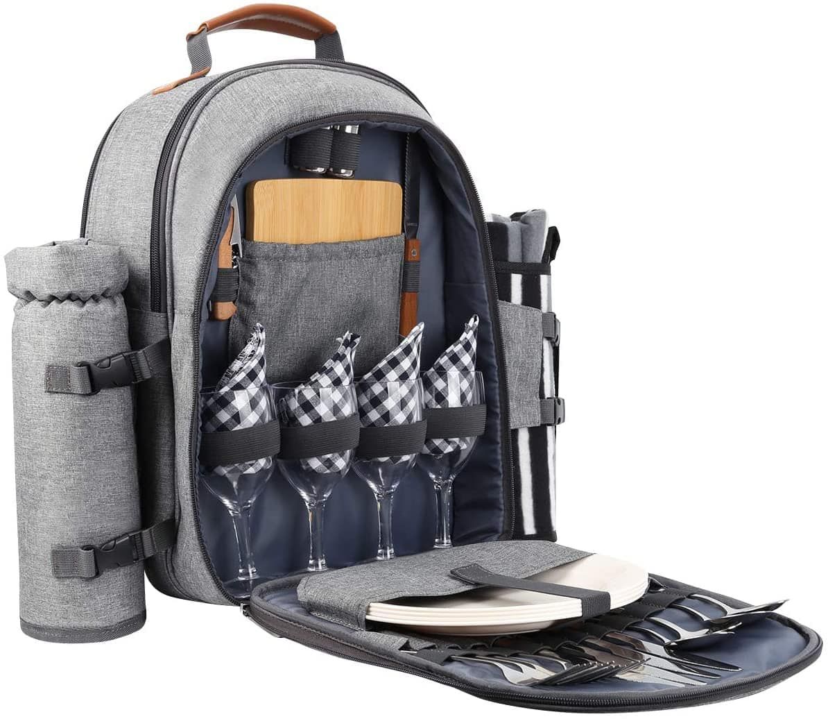 Packing a picnic for the park, lake or beach sounds idyllic but lots of people do it, especially those people who have an all-in-one picnic backpack. This bag includes four sets of dishwasher-safe flatware and hard melamine plates, four wine glasses, a cheese knife and wine opener, metal salt/pepper shakers, and a bamboo cutting board. Just add wine and cheese.