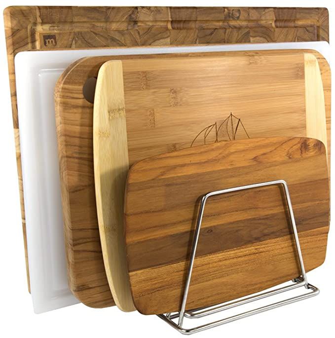 Keep your countertops and cabinets looking neat and organized with this cutting board rack. This rack can hold up to six small cutting boards and because it’s made of stainless steel, it promises not to rust if you end up putting some wet boards on the rack after cleaning them.