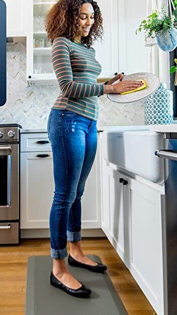 This ergonomic standing mat offers all-day cushioned comfort for your knees and feet. Measuring 24 x 70 x .75 inches, this mat is perfect for either standing and doing dishes or for working at standing desks. And due to its beveled edge design, you don’t have to worry about anyone tripping over it.