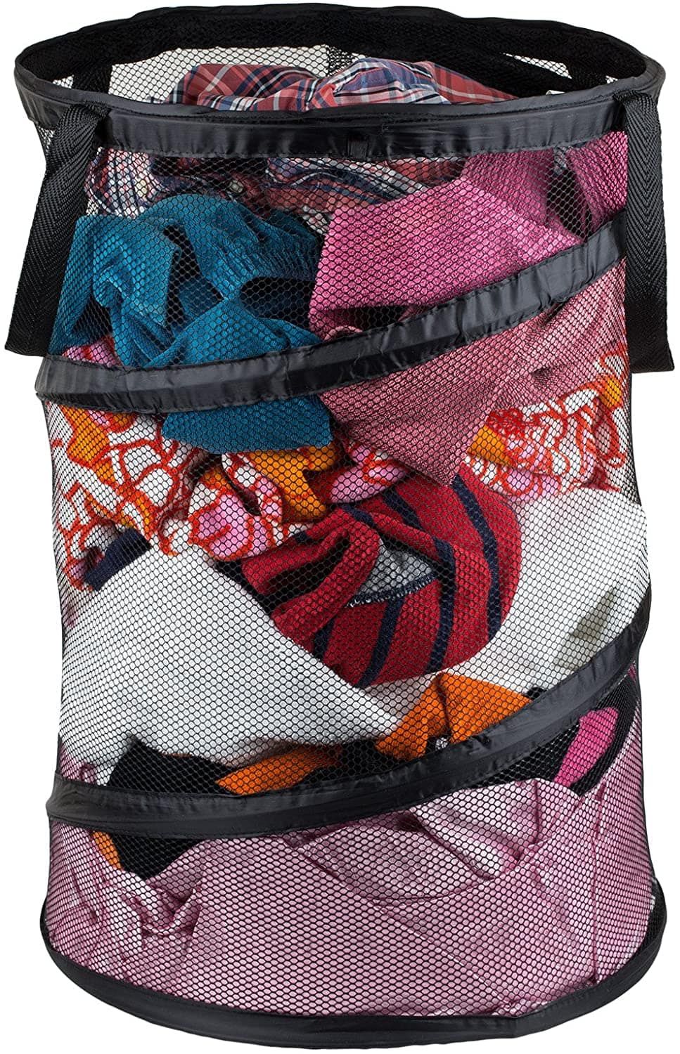 Doing laundry can be a pain for some and I don’t blame them. Hauling your clothes into a hamper then to where ever you get them washed and dried. Then you have to fold and put them away, if you have to sort them because you have more than just yourself it can take even longer. That’s why this mesh popup hamper can at least make some of it easier. It’s plenty big enough to handle all of your laundry or your comforter and towels. Plus it has handles to make it easier to haul it around and when you are done you can just collapse it to store it away.