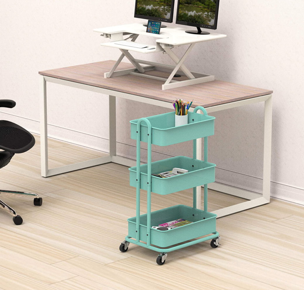Guys, once I got a utility cart, everything else in my life just seemed to roll into place. My skin glows, my hair is shiny, birds and other wildlife converge at my tiny windows and sing praise about my organization skills. Okay, that’s not true, but my kitchen does look and feel way better. It’s so great having a place to put miscellaneous pieces of cutlery, extra dishtowels, and cleaning supplies. Plus, this one is so aesthetically pleasing you won’t even want to hide it away.