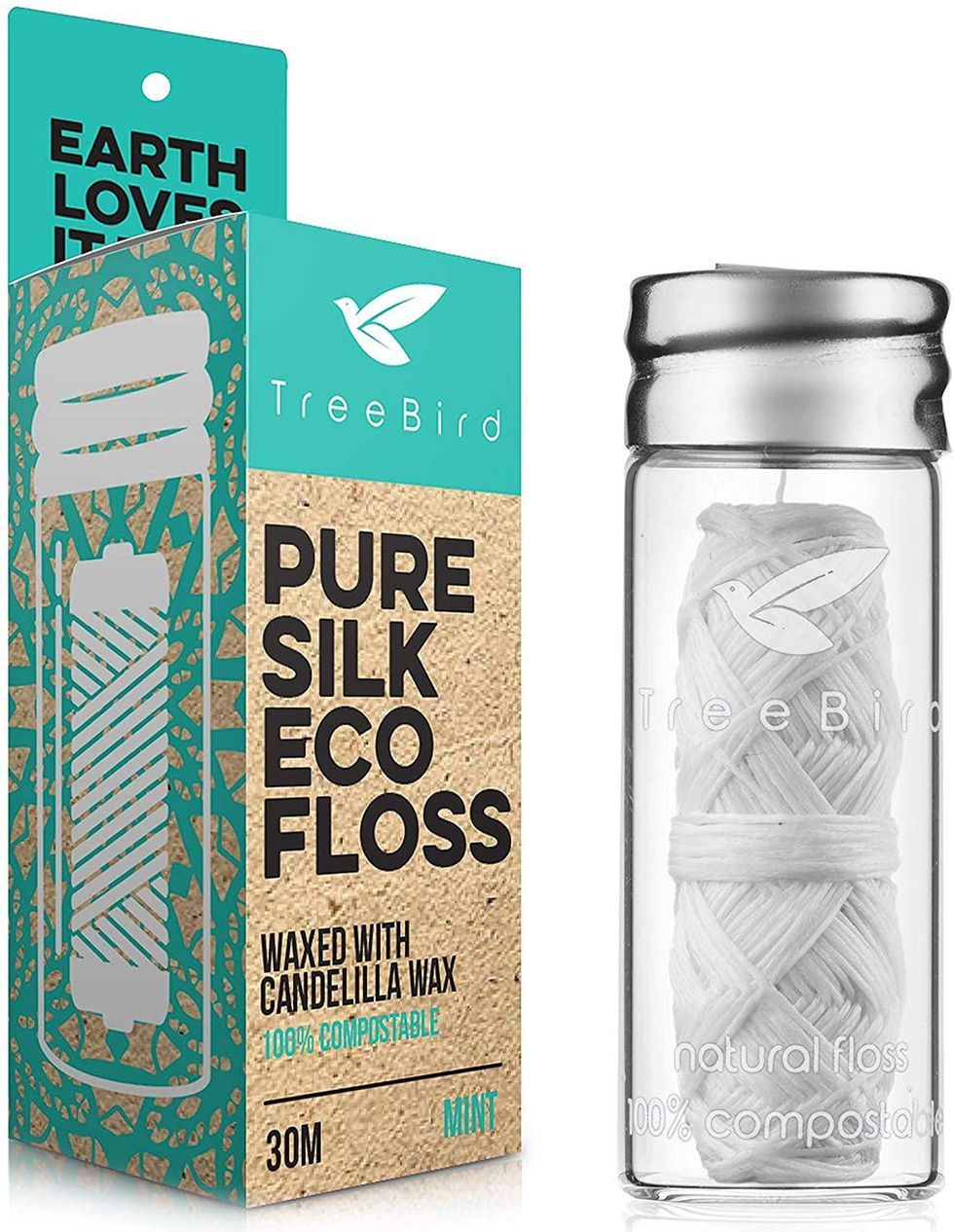 You might think silk eco floss would be weird to use, but you’d be wrong! This natural floss is waxed so it’ll easily clean between teeth, and when you’re done, it’s compostable. And you just refill the pretty glass container instead of buying wasteful plastic containers of floss every time you run out!