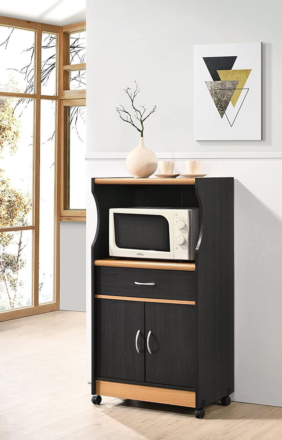 There’s nothing I love more than my little historic house. Unfortunately, because of its age, it doesn’t have the biggest kitchen. And it definitely lacks counter space. Right after we moved in, we knew that we needed more storage space. This microwave cart has been an absolute lifesaver thanks to its ability to hold our microwave and cabinets. It helps us store pots and pans, cooking utensils, and more.