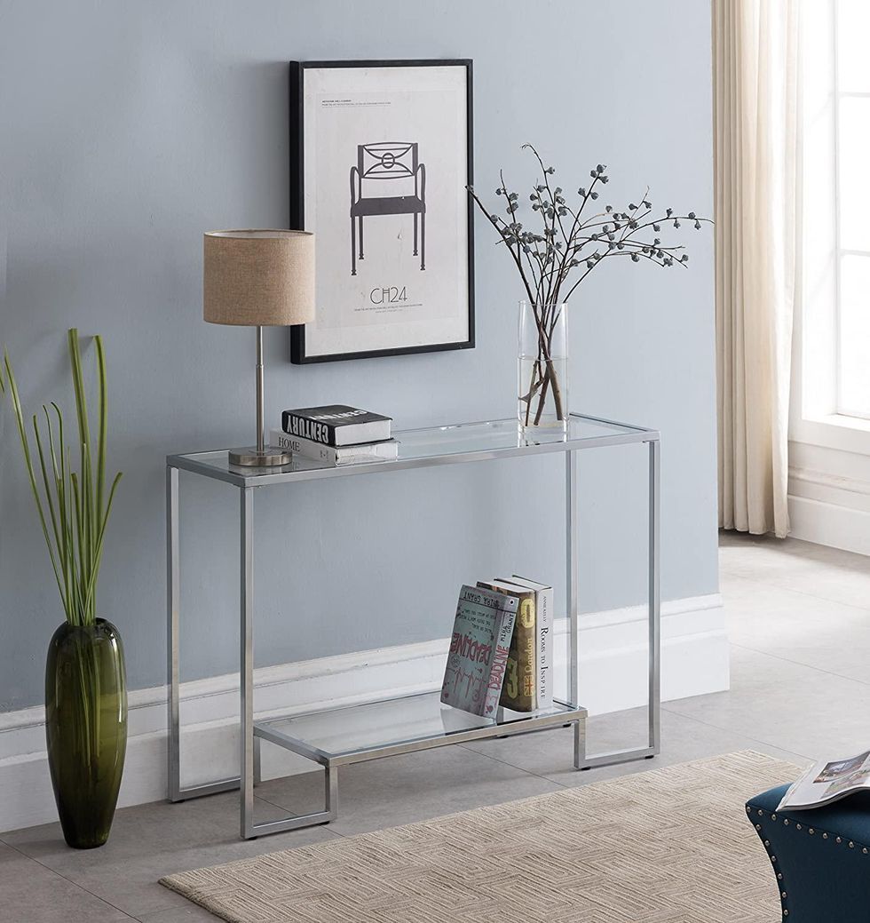 ​Do you have an entryway or bare hallway that needs a little dressing, but you’re not sure what to put there? Look no further. This sofa table is the definition of sleek and opulent. Decorate it with your favorite coffee table books, plants, and other knick-knacks for a modern yet homey look.
