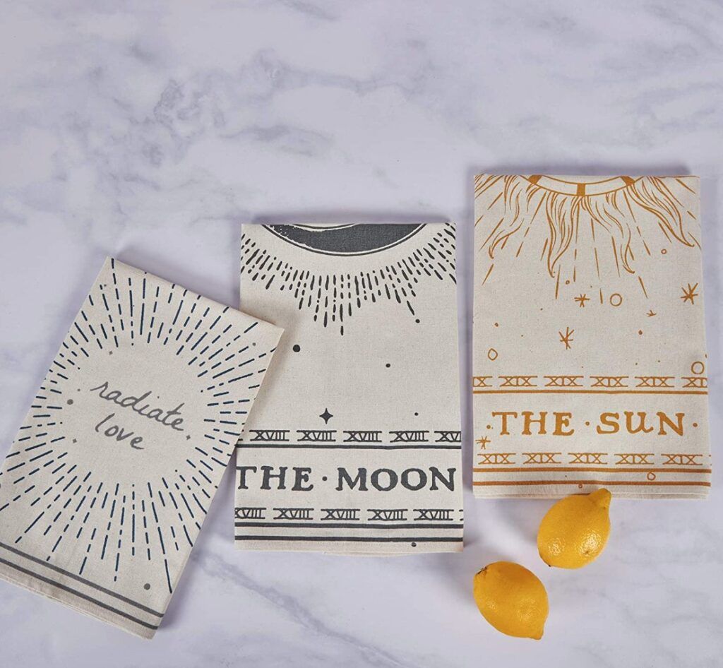Forget plain, minimalist, all-white kitchens. They’re boring, and frankly a little uninspiring when it comes to whipping up your next culinary delight. Add a touch of spirituality and charm with these tea towels you’ll love seeing hang off your countertop. With 3 unique designs, they’re such an elegant choice, as well as being fully functional too!
