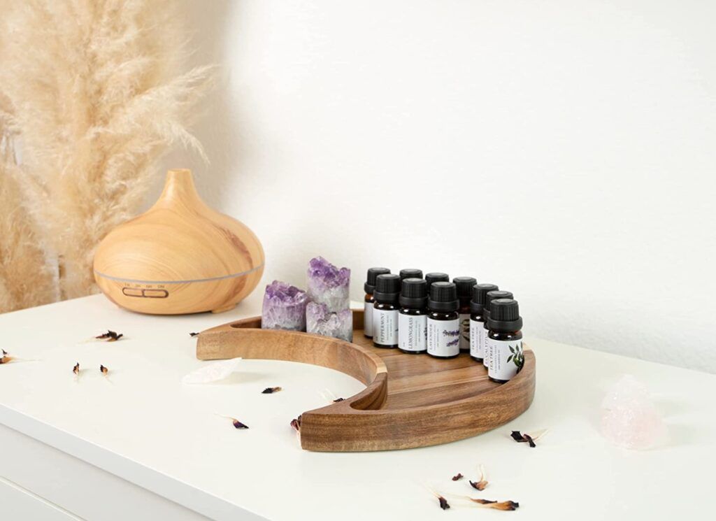 It can be hard to collect all your knicks and knacks in one place while also maintaining a tranquil air of organization and elegance in your bedroom. That’s why I adore this acacia wood moon tray. I’m ordering one right now to keep all my rings, crystals, and hair clips together. It’s such a cool design too!