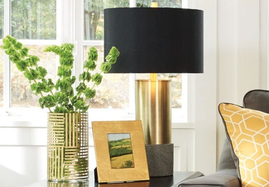 Not just an essential piece to brightening up any room, lamps can serve as the perfect eye-catching piece, standing tall on furniture and drawing attention with their endless design options. These lamps surely do that job and more with a faux concrete bottom contrasting against a classic brass stand.