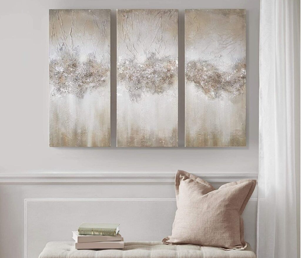 Buying art can be confusing, never mind expensive! Stores can sometimes sell low-quality, mass-produced works that just don’t have the same magic as better-made pieces. That’s not the case for these hand-painted canvases from Madison Park. The modern art featured on all 3 ready-to-hang panels is intriguing with an abstract print and depth of color that draws you in.