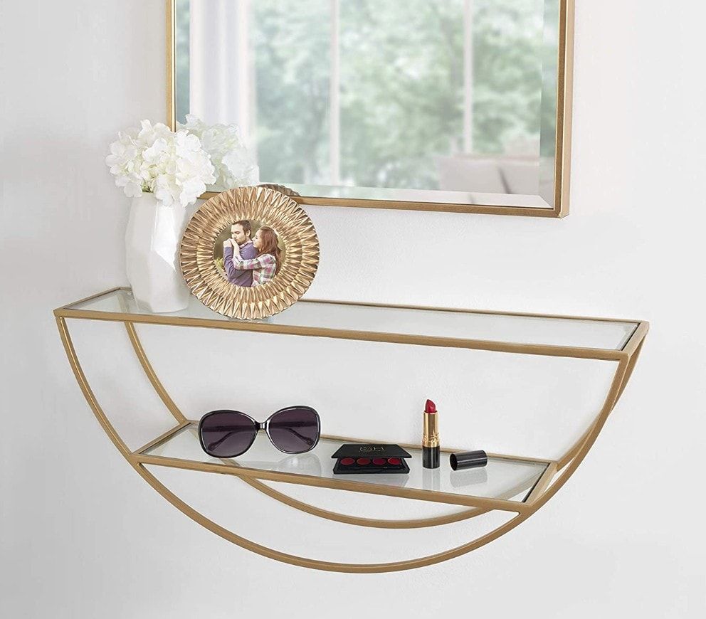 If you’re looking for a piece that looks expensive and like something you’d see in the homes of the A-listers for a fraction of the price, then you’ve found it in this half-circle wall shelf. It is large enough with 2 tiers to hold your favorite keepsakes, picture frames, and even plants, and it’s super easy to hang, making it an ideal DIY project.