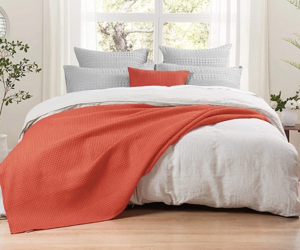 Pinterest bedrooms are all about rustic looks, natural fiber sheets, plants, and hardwood floors but with an addition of warmth that makes the whole place look inviting. This is the only product you’ll need to add that touch as this waffle weave blanket looks so cozy you’ll be wanting to wrap yourself up in it immediately. Plus, the burnt orange color provides a contrast from the pale look, drawing the eye straight away.