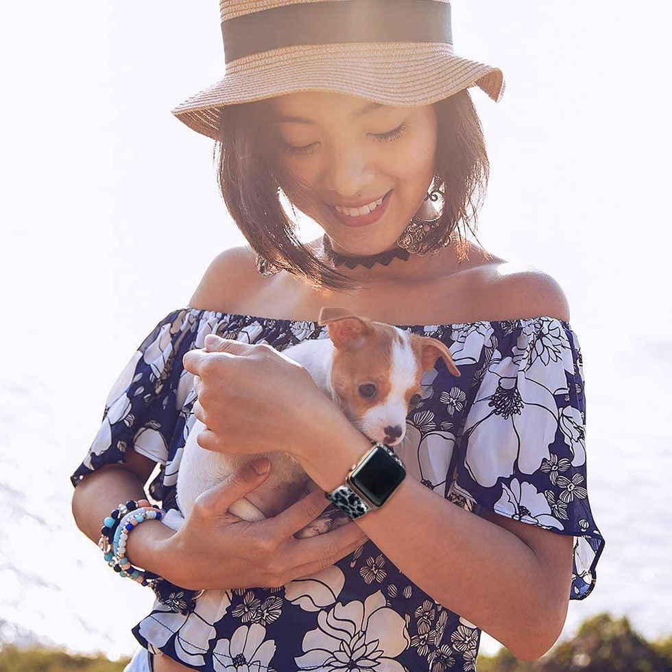 I love dressing up my Apple Watch and I’ll let you in on a little secret, there are hundreds of options out there (including many on Amazon) that won’t set you back more than seven or eight bucks. This stretchy strap loop in a snow leopard print fits all Apple Watches from the oldest to the newest. I prefer this style to the traditional buckle style because you can pull these off and on in a flash.