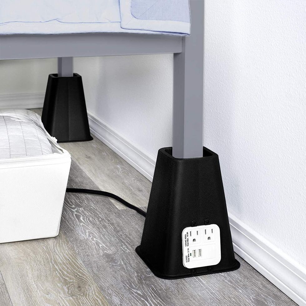 I feel like I’m always searching for a charger, a charging cable, or an available outlet to plug into. Now you can stash some extra outlets and USB ports in a place no one will suspect — right under your bed. These bed risers with built-in outlets and ports accomplish a few things simultaneously. It adds height to your furniture, additional storage underneath, and — of course — a convenient place to get charged.