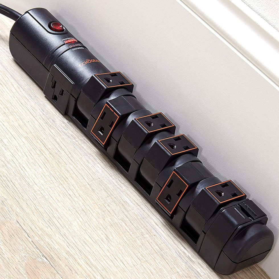 You know how some plugs are huge and bulky (lookin’ at you, Macbook)? Not to worry, this power strip has rotating outlets so you can plug even chunky stuff in without losing the use of any of the outlets! It has eight outlets with heavy-duty surge suppression and built-in cord management so even though it’s bigger than your normal powerstrip, it won’t be a huge mess of cables and cords.