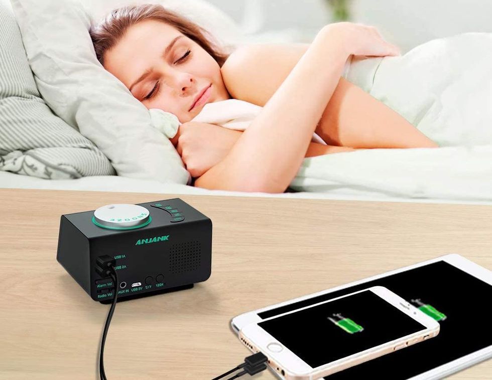 This alarm clock helps me naturally wake up for the day with soothing nature sounds like running water or birdsong. My husband doesn’t need to get up as early as me, and I found he prefers this over my old alarm clock or my phone, which has the same alarm as his. Plus, it charges your devices!