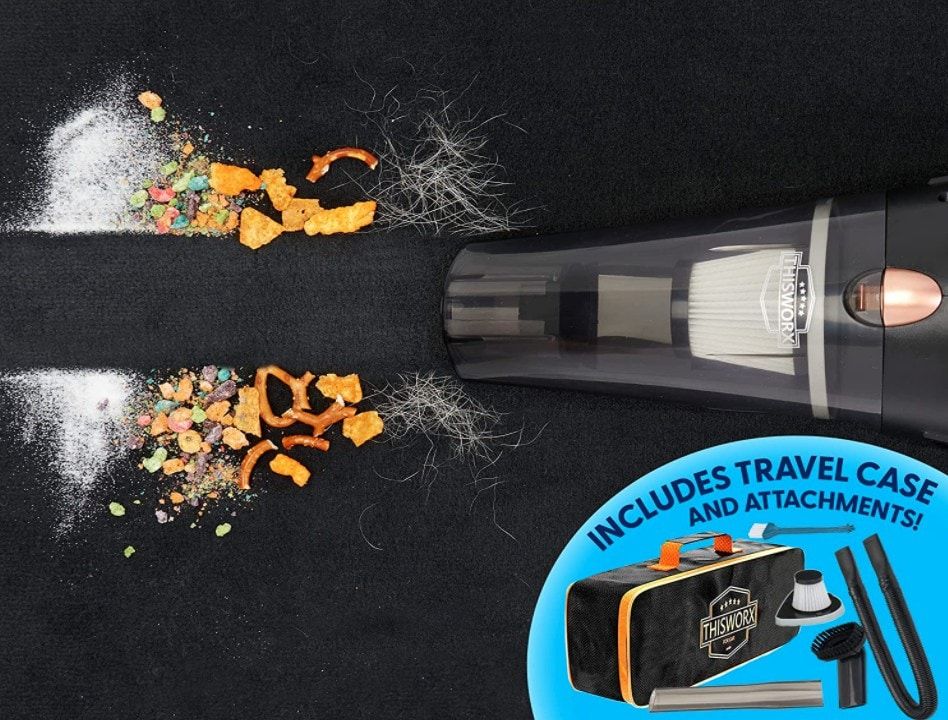 Everyone has spills now and again in their vehicle, and it makes a difference if you can clean up quickly. The THISWORX car vacuum cleaner is a handheld device that takes the hassle out of keeping your car clean. It comes with three attachments; you can vacuum everything from hard-to-reach crumbs, sand, and dog hair.